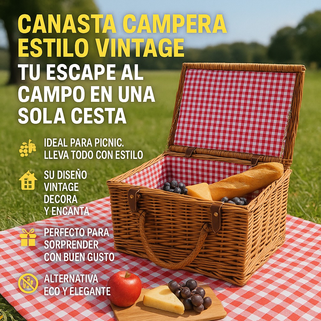 🧺 CANASTA CAMPERA ESTILO VINTAGE – TU ESCAPE AL CAMPO EN UNA SOLA CESTA