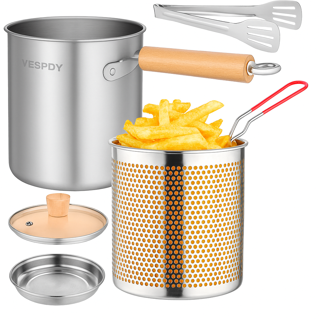 Ideal para hogares, cocinas pro, o incluso foodtrucks. Fríe, cuela y guarda en un solo movimiento.